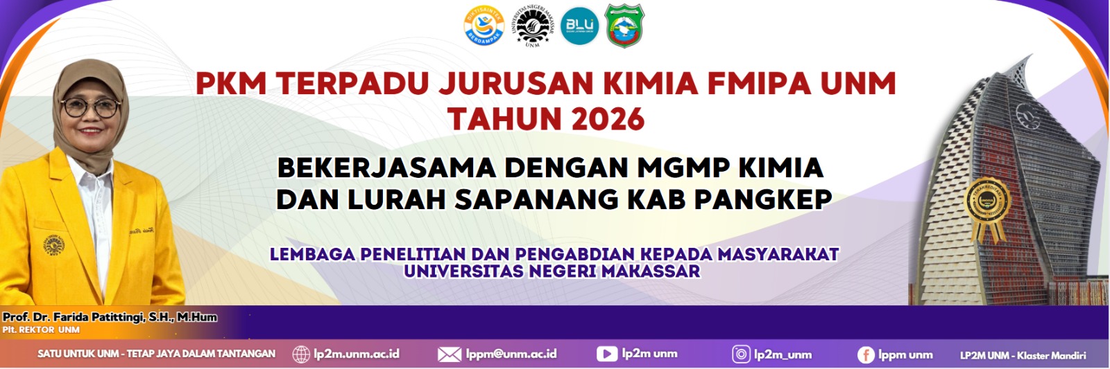 Pangkep, 25 April 2026 — Jurusan Kimia Fakultas Matematika dan Ilmu Pengetahuan Alam (FMIPA) Universitas Negeri Makassar (UNM) sukses menggelar kegiatan Pengabdian kepada Masyarakat (PKM) Terpadu di Kelurahan Sapanang, Kecamatan Bungoro, Kabupaten Pangkep, Provinsi Sulawesi Selatan, pada Sabtu (25/4). Kegiatan ini merupakan hasil kerja sama antara Jurusan Kimia FMIPA UNM, Musyawarah Guru Mata Pelajaran (MGMP)...