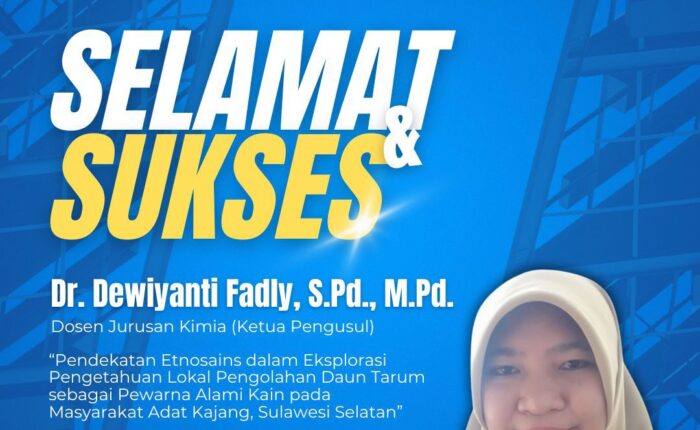 Selamat datang di halaman profil Jurusan Kimia Fakultas Matematika dan Ilmu Pengetahuan Alam Universitas Negeri Makassar (FMIPA UNM). Kami merasa sangat bangga dan bersemangat untuk memperkenalkan jurusan kami kepada Anda.